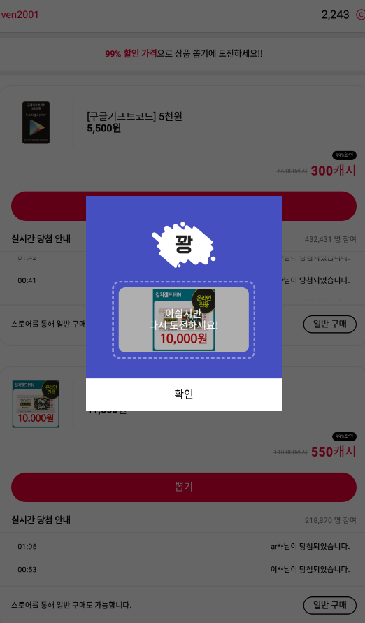 5. 550캐시로 10000원상품권 교환가능한 기회와 300캐시로 구글기프트권5천원 받을수 있는 기회입니다.