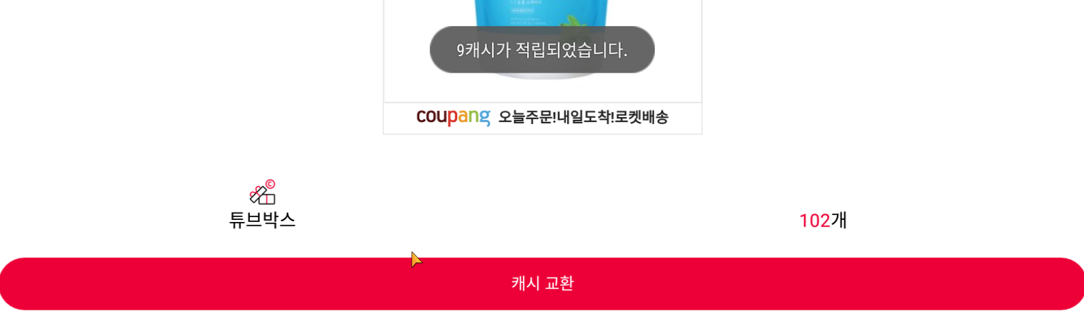 적립된 튜브박스 5개 소모로 랜덤으로 캐시로 전환이 됩니다.