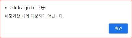 코로나19예방접종 사전예약 해당기간 내에 대상자가 아닙니다