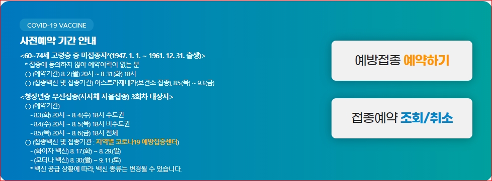 질병관리청 코로나19 백신 및 예방접종 정보안내