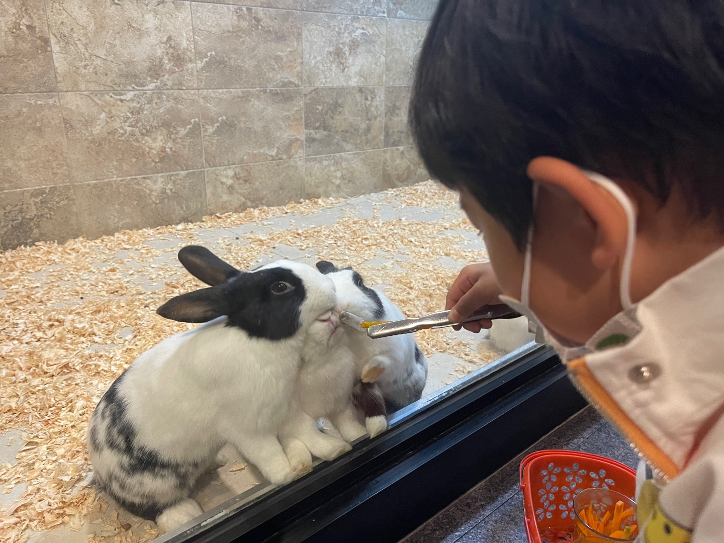 성인 2명, 아이 두명 먹이 2개 -> 총 56000원 소비.