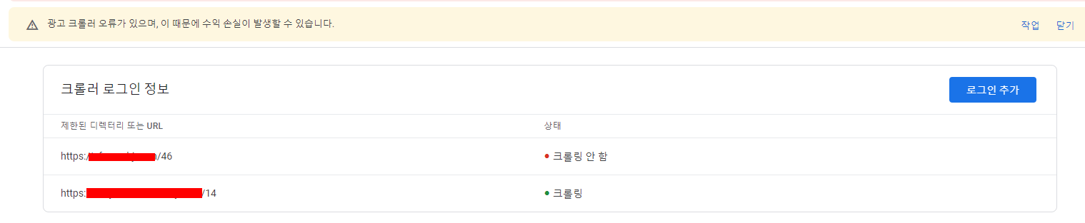 처음에는 크롤러 오류가 떴을때 신경을 쓰지 않았다.
